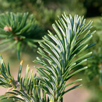 A kissing cousin to the Fraser Fir, has a green hue and soft, supple branches with short needles.